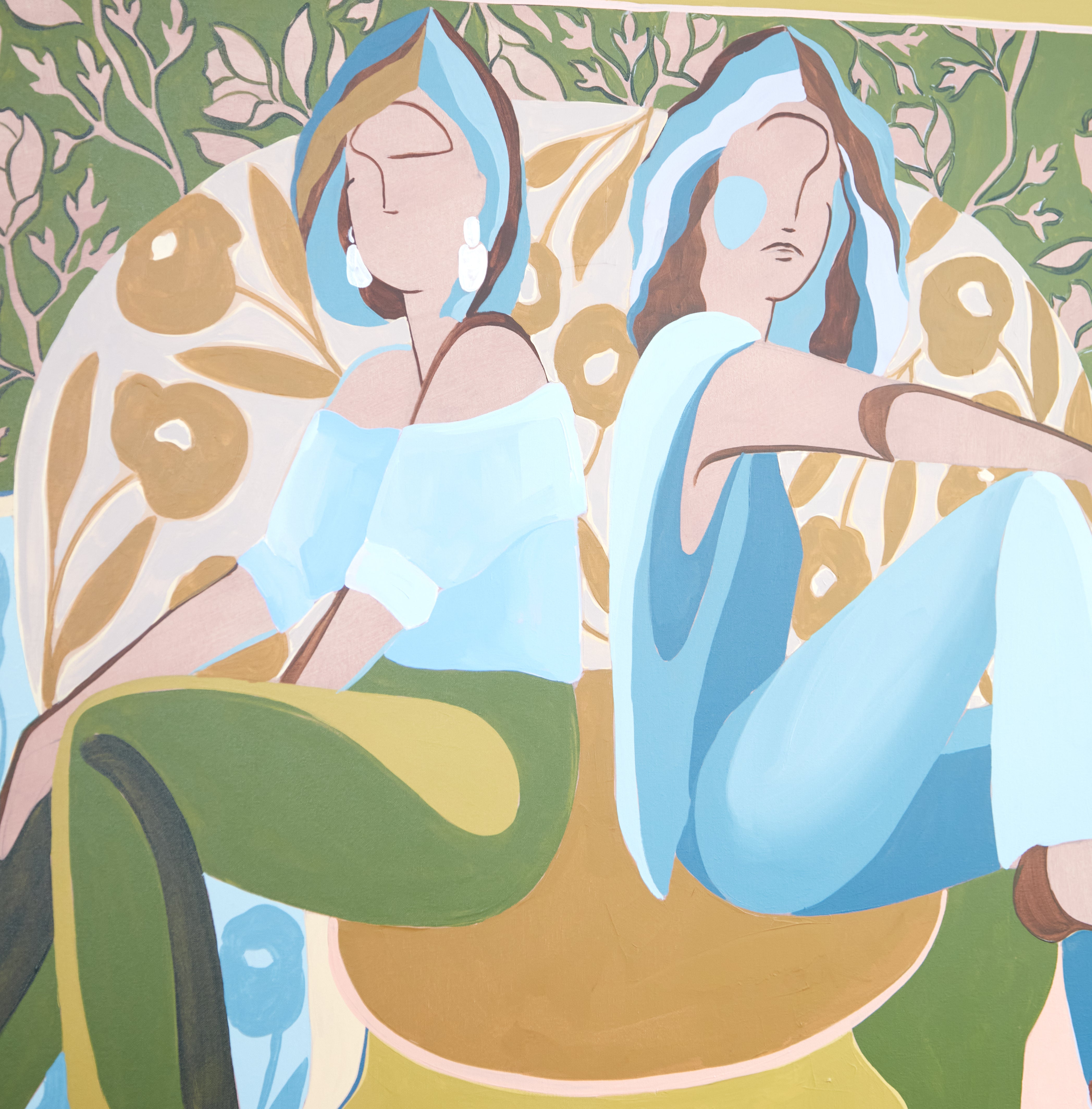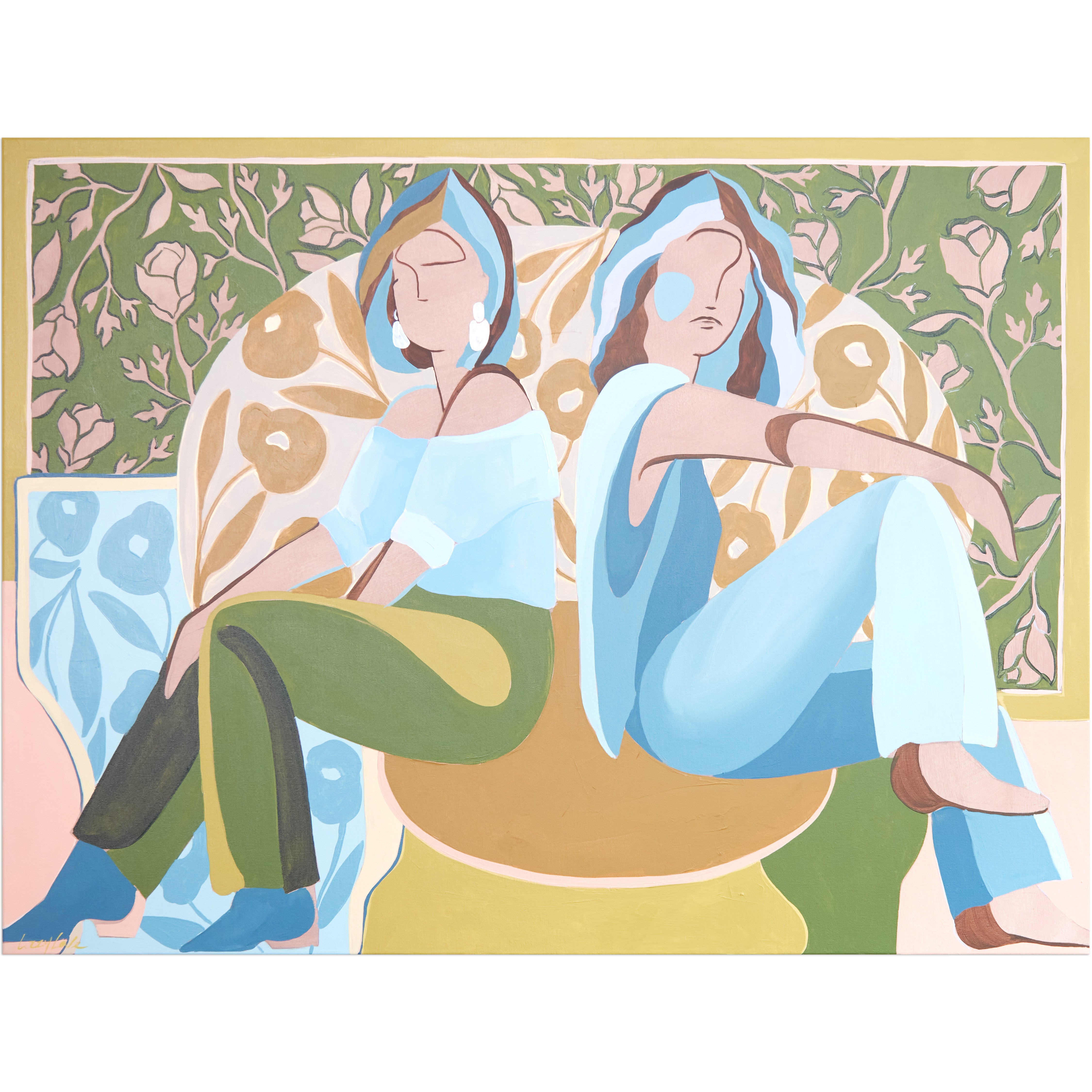 My name is Lizzy Love and I'm an artist in Nashville, TN. I create figurative works on canvas with acrylic paint and papers with watercolor and gouache. This body of work has been a rebirth for me creatively. While I've been painting full time for the last 5 years, I feel like I've really come into myself creatively with my figurative paintings. Born out of a time of uncertainty and lots of questioning, I was pushed to dig deep and get back to basics. I decided to switch gears from painting the landscapes, for which I had been primarily making for years. As an effort to get my creative spark back, I started sketching figures from magazines, a subject I hadn’t explored in a long time. Over many months they slowly evolved into what they have become; starting from detailed and realistic, to more abstract and modernist. I am a big believer that the environment of your home shapes your attitude, and for that reason I love interior design. That love is what led me to start incorporating furniture / interior surroundings / and patterns into the pieces. I pull apart and put back together the lines and shapes of many of my favorite interiors, and place them amongst the figures in a dynamic way. These ladies embody many things - community, respect, femininity, reverence. They are a way to draw attention to what being a woman entails. Many times it means being fierce and strong. Many times it means leaning on and drawing your strength from friends that are like family. While creating each piece, I draw upon the love and reverence I have for all the women in my life; the women who have shaped me, lifted me up when I needed it, laughed with me, and inspired me.
