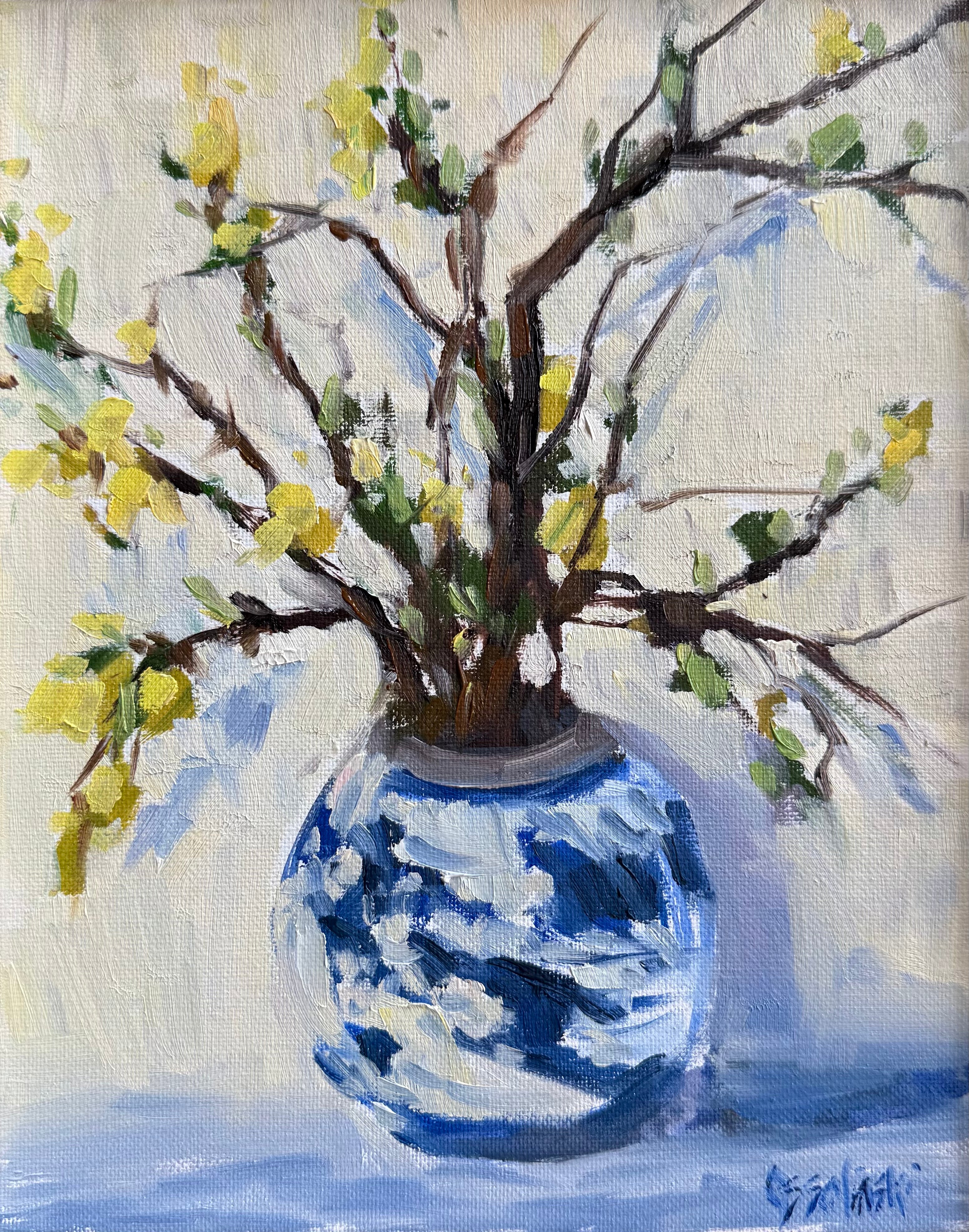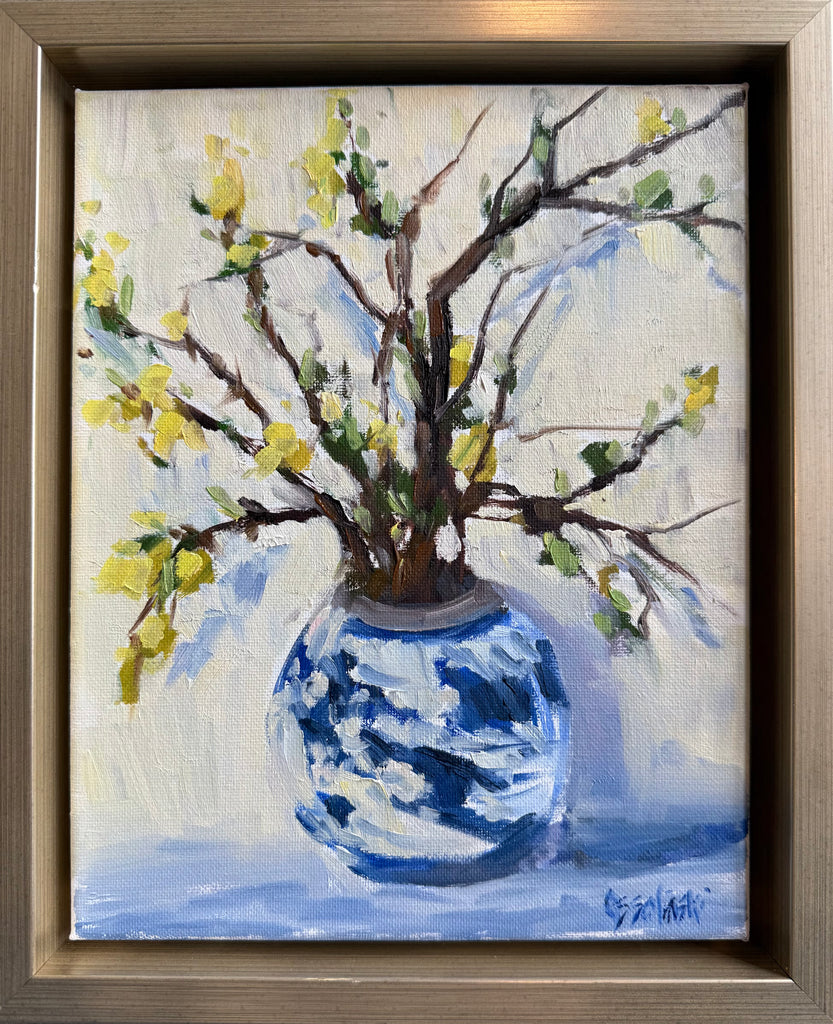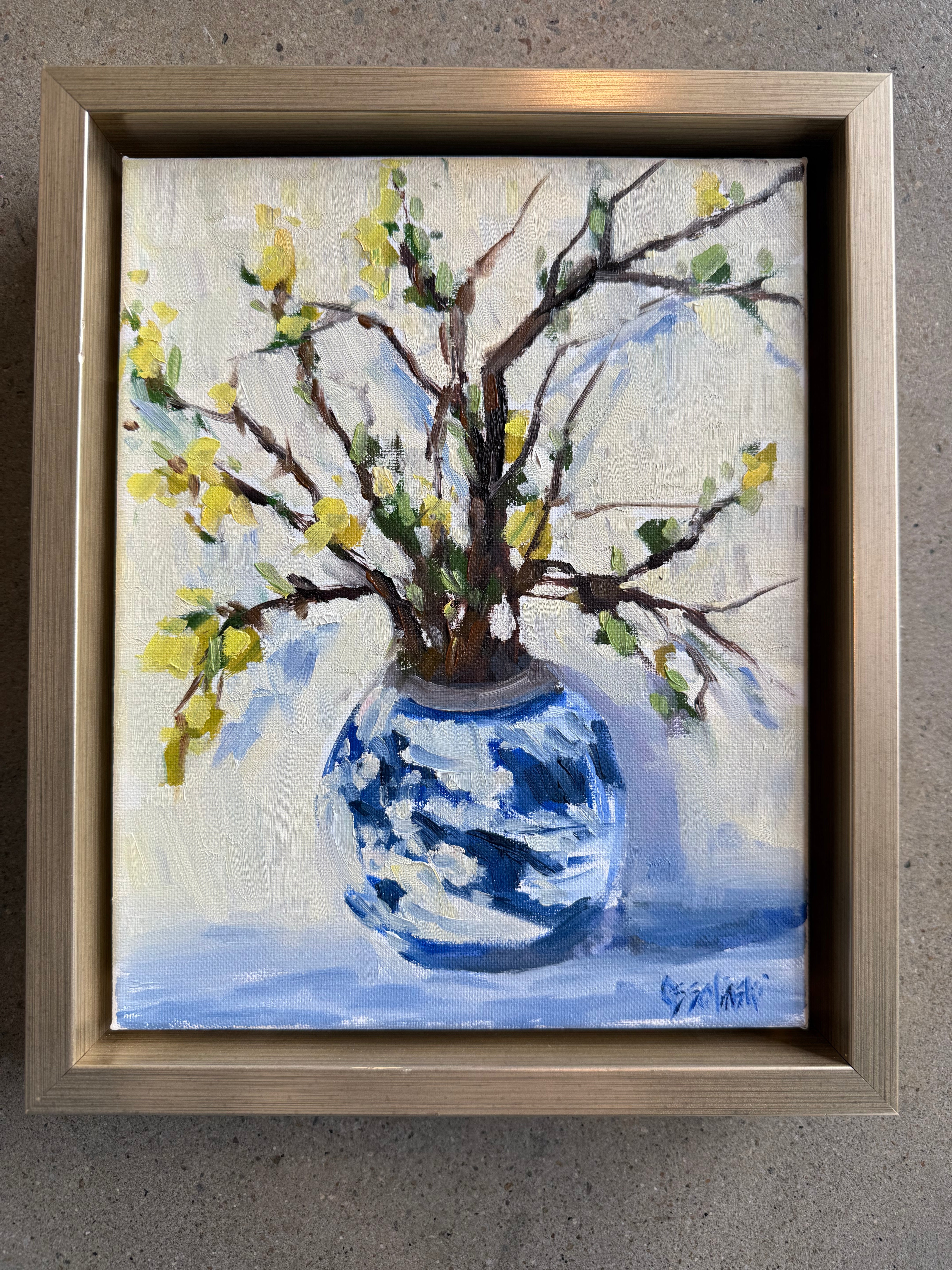oil on linen panel, framed in matte gold frame