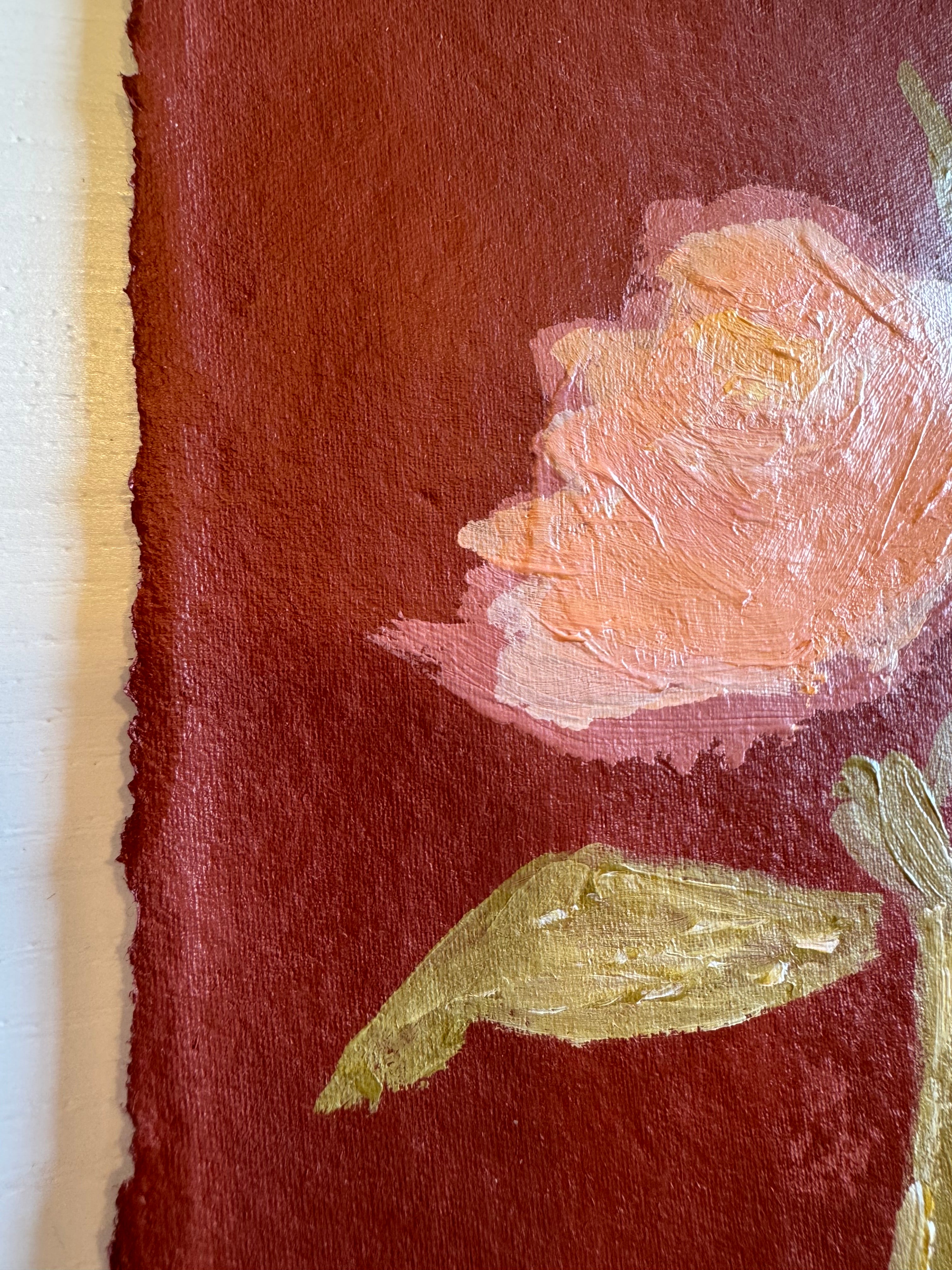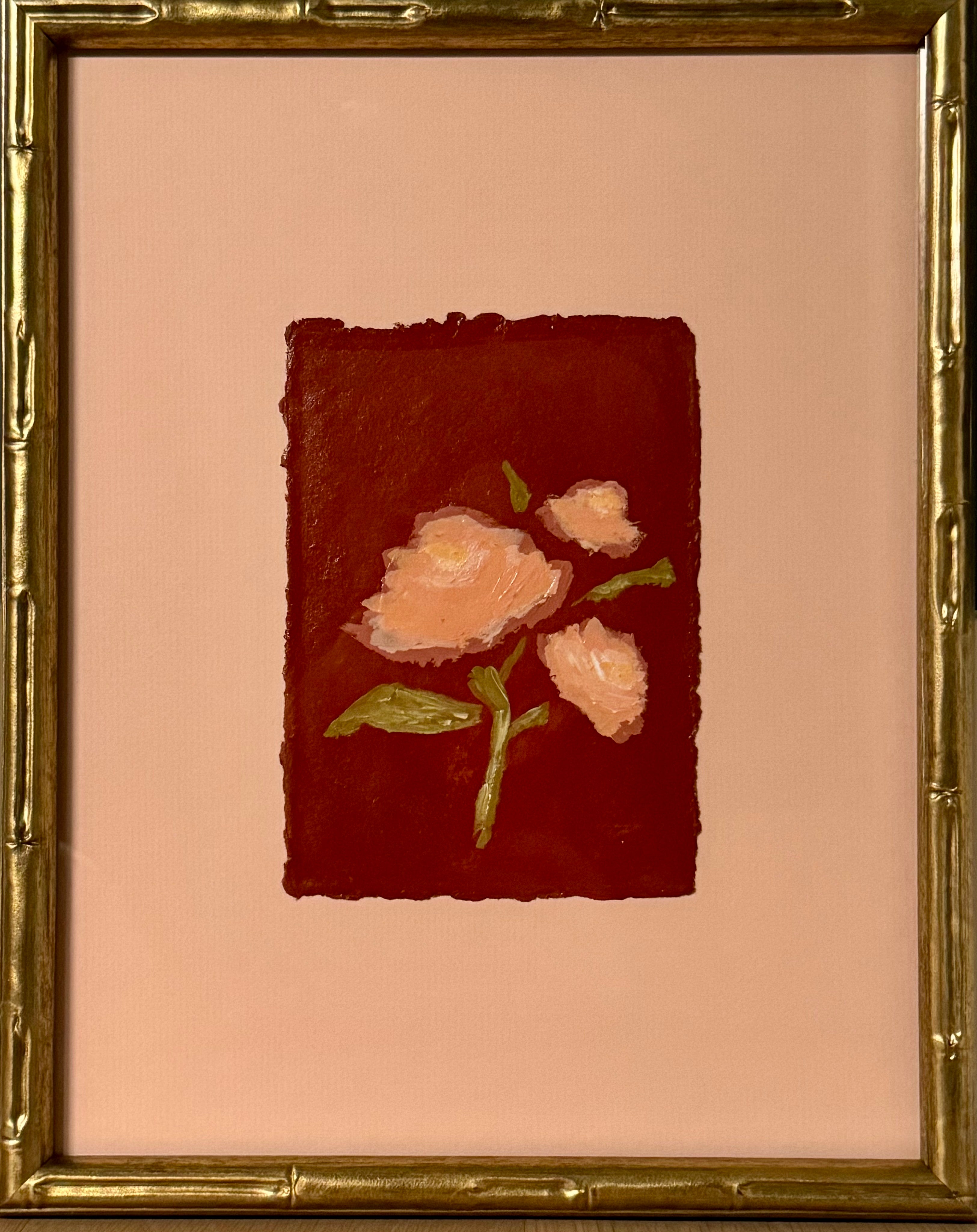 acrylic on deckled edge paper, framed in gold bamboo frame with blush mat