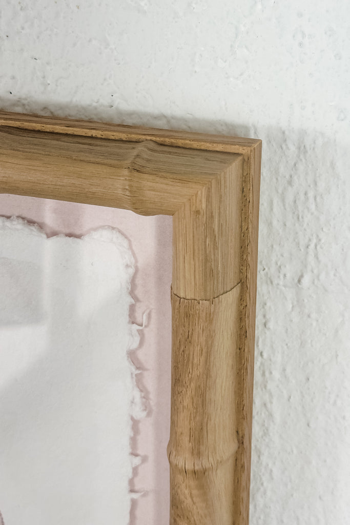 watercolor stick on handmade paper, float mounted on white mat, in faux bamboo wood frame