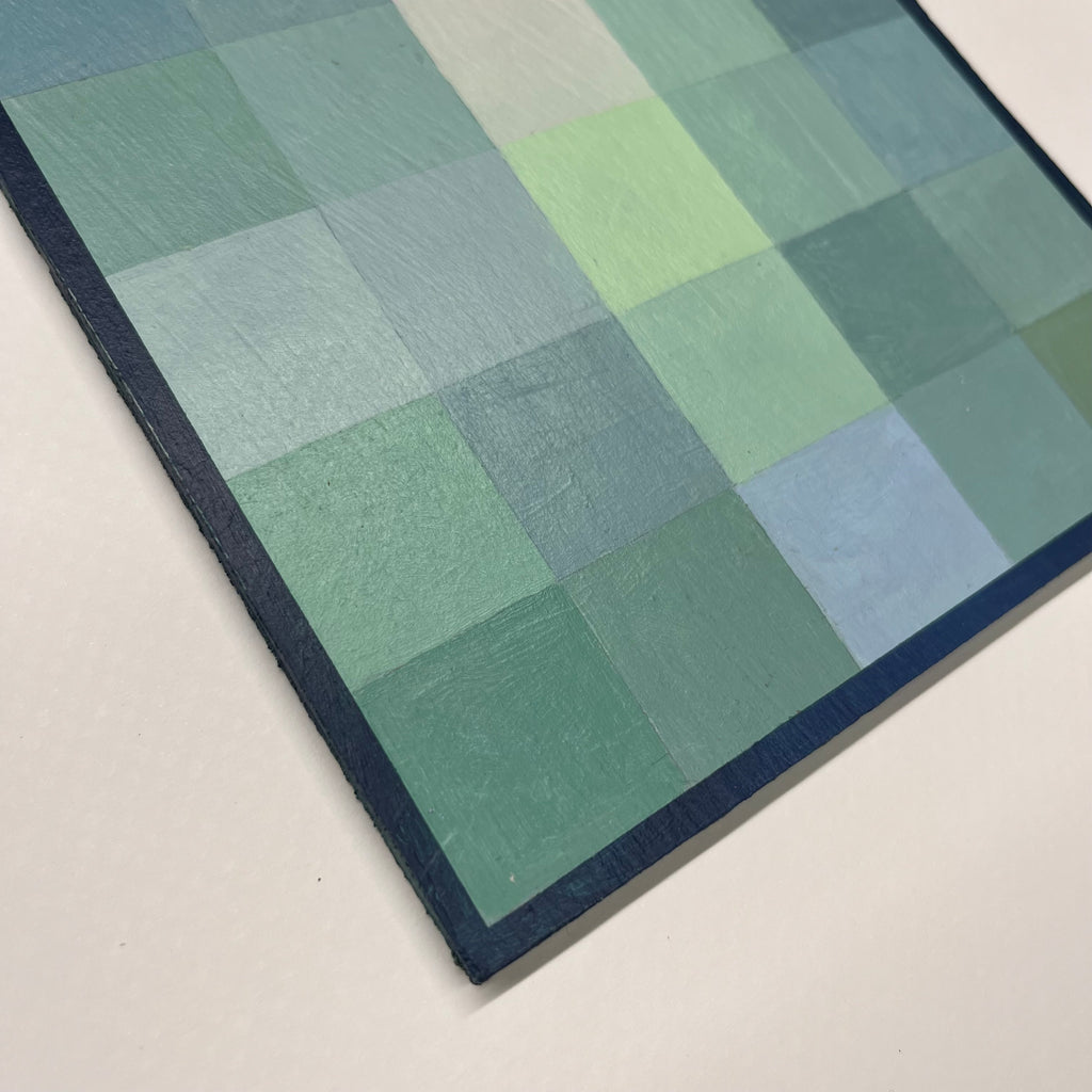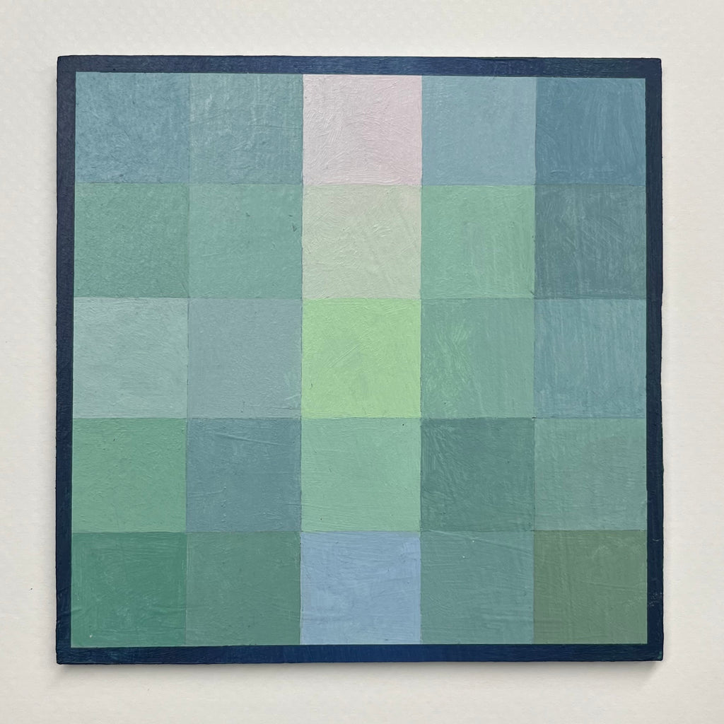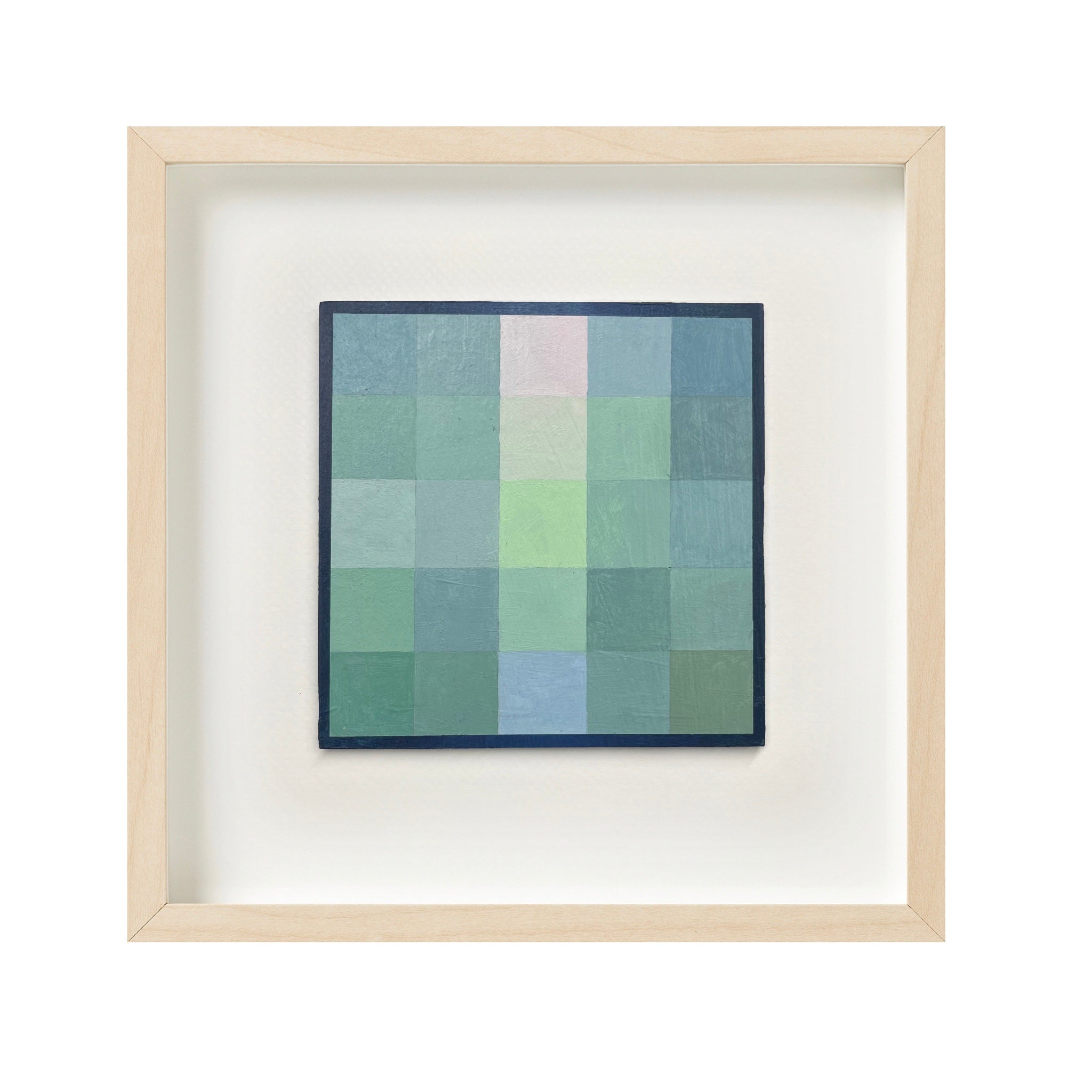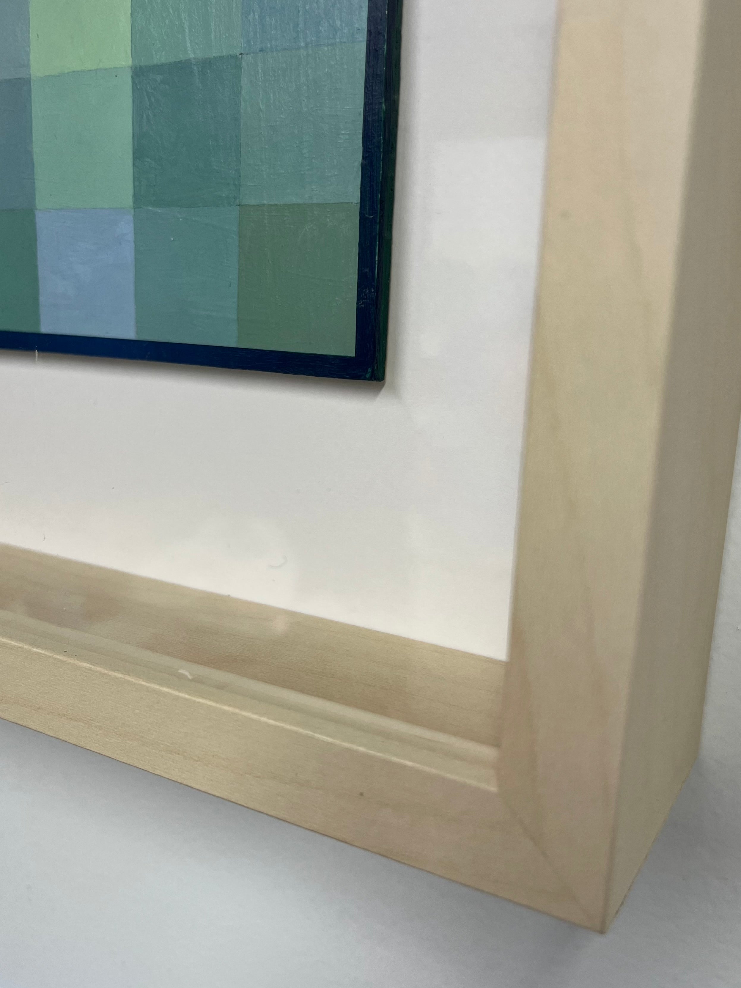 acrylic on panel, framed in natural wood frame