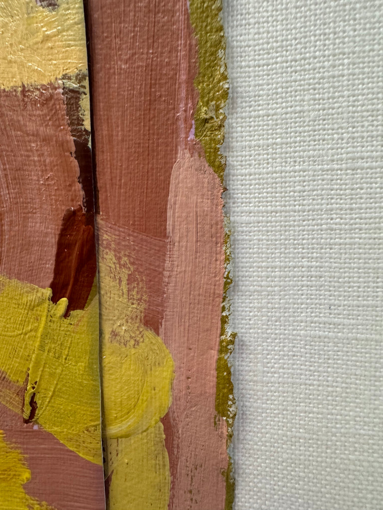 mixed media collage on linen mat. framed in gold frame