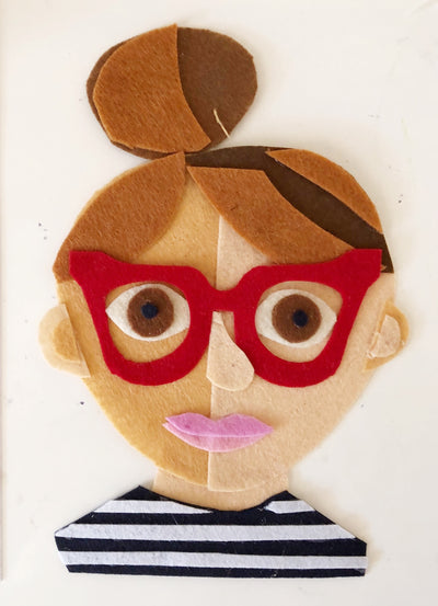 Sam Sidney is originally from New York, and moved to Charleston in 2007. She studied Studio Art at Skidmore College in Saratoga Springs, and earned a Masters in Art Education from NYU. For many years she was an illustrator, but it wasn’t until the quarantine that she started working with felt. She promised herself she would do an art project with her kids each day. One day, she pulled out a small box of felt and made some collages. She made a self portrait out of felt, posted it online, and the rest is history! She free hand cuts felt pieces to create protists of celebrities, pets, food and drinks. When she is not making things out of felt, you can find her at the beach with her 4 kids and 2 dogs.