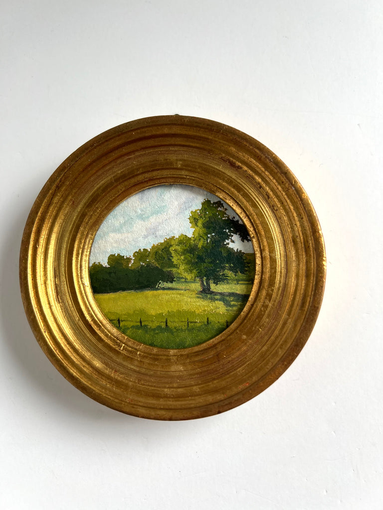 Jennifer was born in Jackson MS and moved to Nashville as a child. She enjoyed art as a child and painted with oils a bit as a teen, but ultimately went to MTSU to earn a degree in nutrition. Jennifer didn’t truly begin painting again until her children were in school full time, and started simply by painting pieces she wanted to hang in her own home. Discovering a love for vintage and antique frames (not to mention looking for these frames both in-person and online), she began pairing them with her favorite paintings. She paints primarily in acrylics on handmade paper. “I love the juxtaposition of a vintage/antique frame with the freshness of a modern landscape on textured handmade paper; the marriage of that tradition and history combined with the fresh clean colors in my pieces brings me joy.” She finds inspiration in clouds and trees and the hunt for the perfect vintage frame. Jennifer lives in Nashville with her husband and two boys.