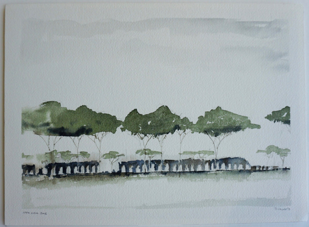 In architecture school we were trained for five years to present our designs as carefully drafted and water-colored washes in the Ecole des beaux arts tradition. In contrast we also learned freehand plein air watercolor sketching. The tension between these two sensibilities – tight versus loose; controlled versus free; slow versus fast – interests me and I hope that my paintings benefit from this tension. I continue to practice architecture and paint whenever I can. Inspiration comes from visiting unfamiliar places and revisiting familiar places with new eyes.