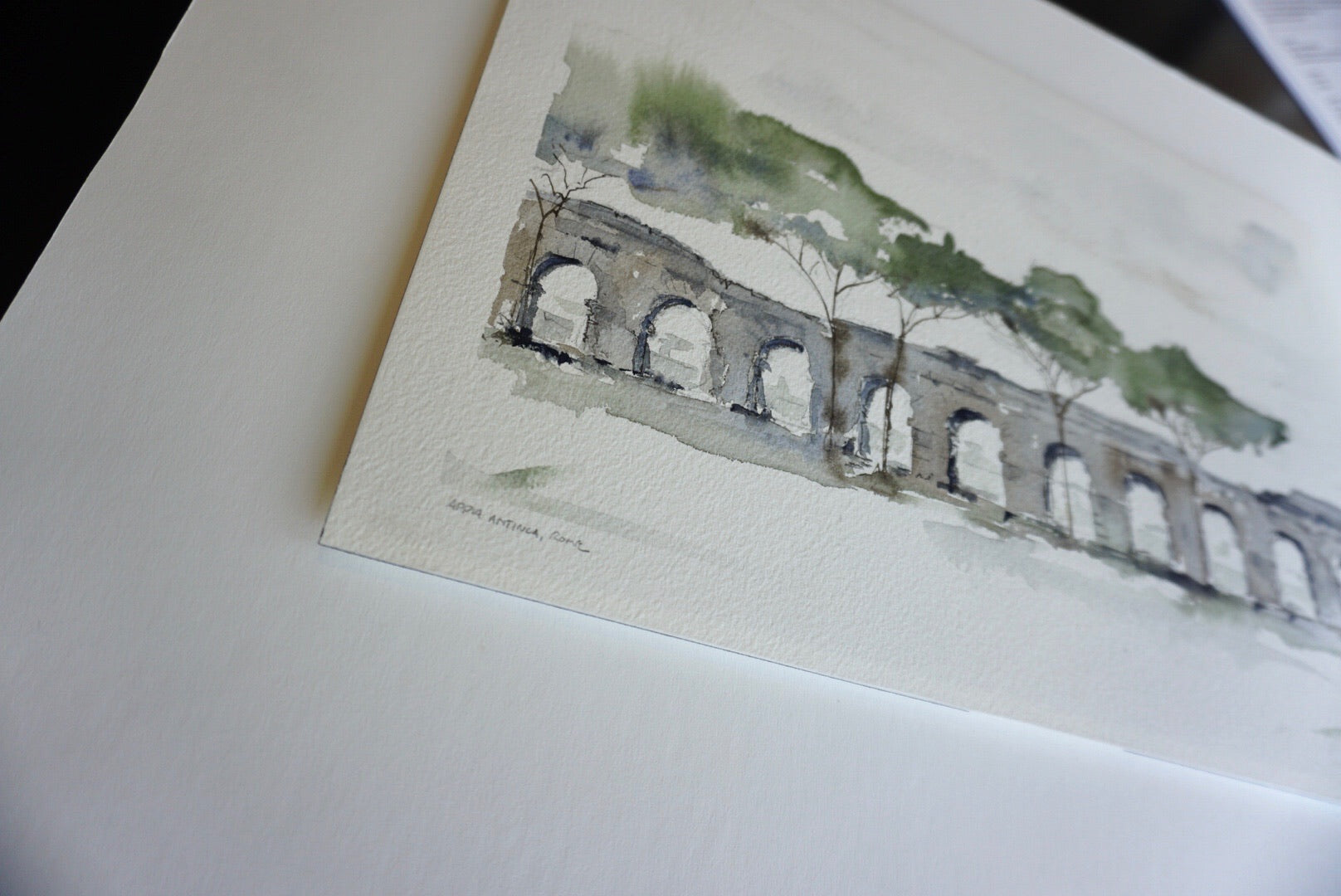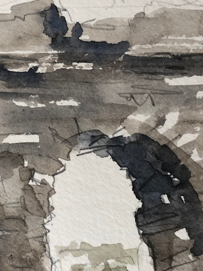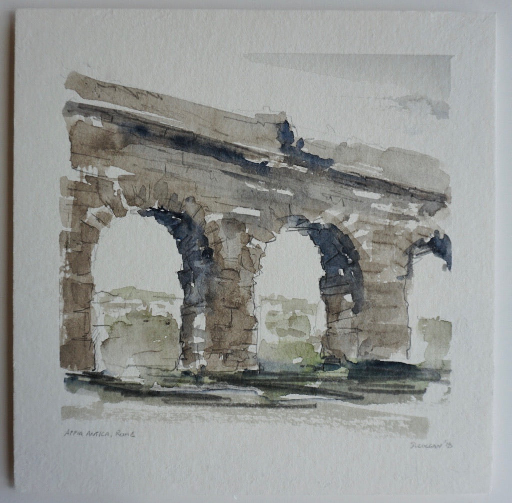 In architecture school we were trained for five years to present our designs as carefully drafted and water-colored washes in the Ecole des beaux arts tradition. In contrast we also learned freehand plein air watercolor sketching. The tension between these two sensibilities – tight versus loose; controlled versus free; slow versus fast – interests me and I hope that my paintings benefit from this tension. I continue to practice architecture and paint whenever I can. Inspiration comes from visiting unfamiliar places and revisiting familiar places with new eyes.
