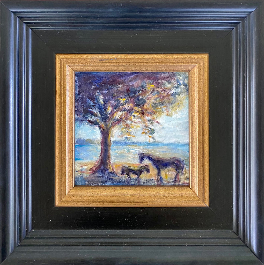 oil on canvas, plein air painting in black and gold frame