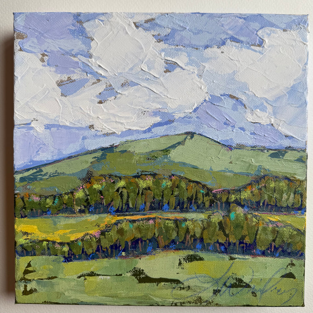 Lindsey’s paintings are an escape and journey - a time to relish the process of creativity: the brush strokes, the layers, the juxtaposition of colors. She works primarily with acrylic paints for their intensity of color and the ability to layer and create textures with various acrylic mediums and gels. A native of Lynchburg, Virginia, Lindsey’s landscapes generally focus on special places that she has known all her life, including fields at the foot of the Blue Ridge Mountains and the pristine beauty of the Cowpasture River. Working from onsite sketches and photographs, she mixes observations with her own personal memories and feelings of how she perceives a place. In addition to being an artist, Lindsey is a full-time art educator, wife, and mother of two young children.