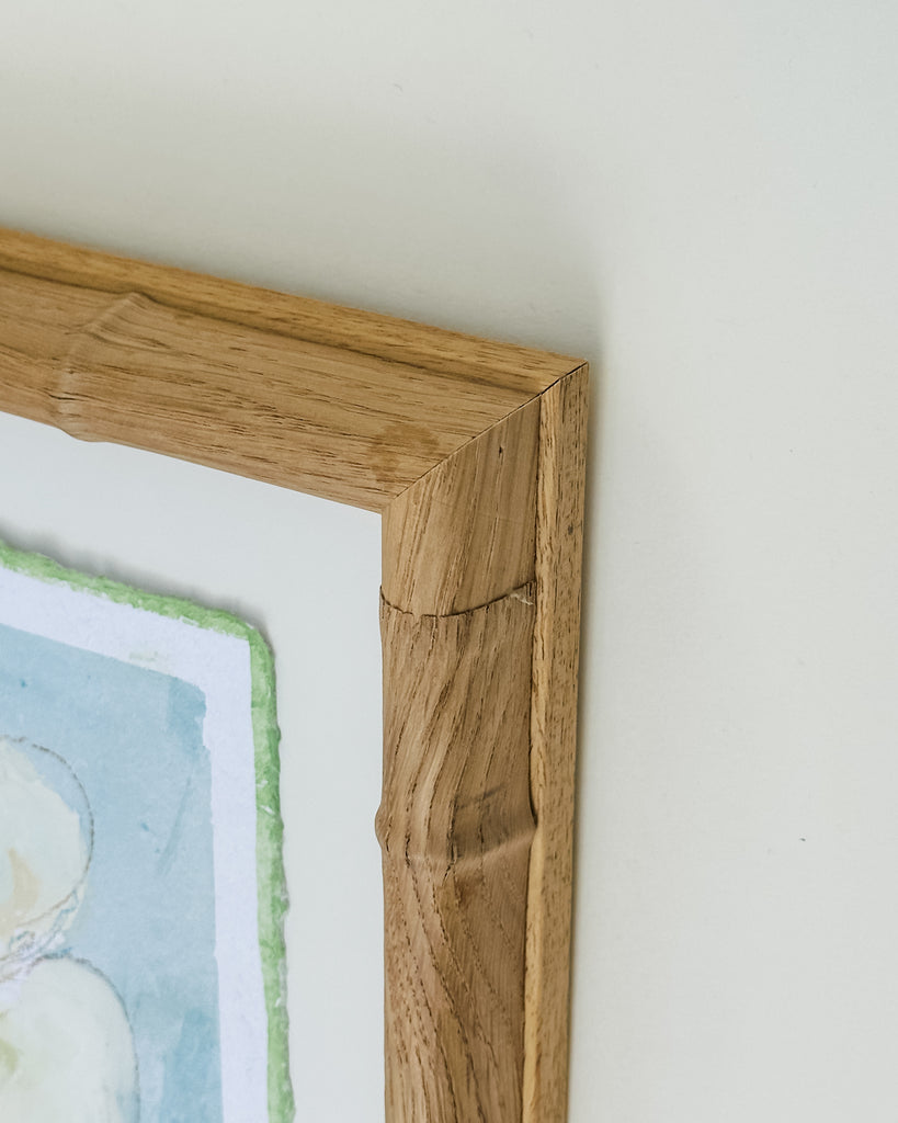 mixed media on handmade Nujabi paper, in natural wood faux bamboo frame