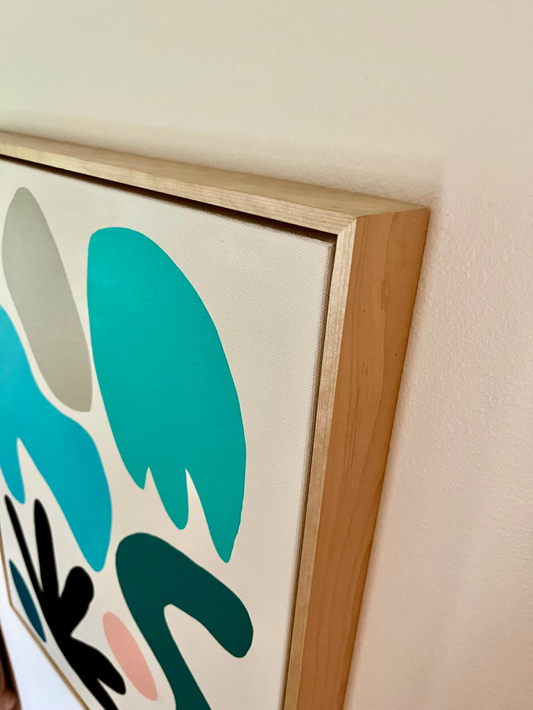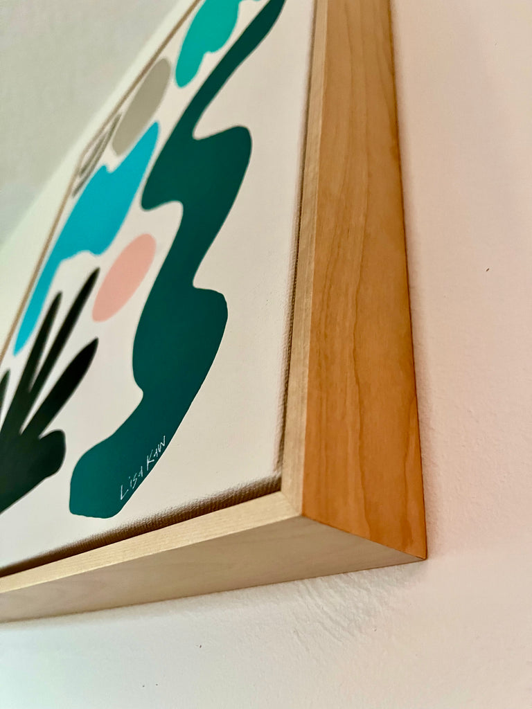 acrylic on gallery wrapped canvas, in natural maple wood floater frame