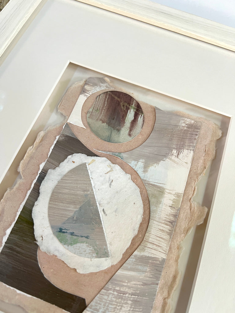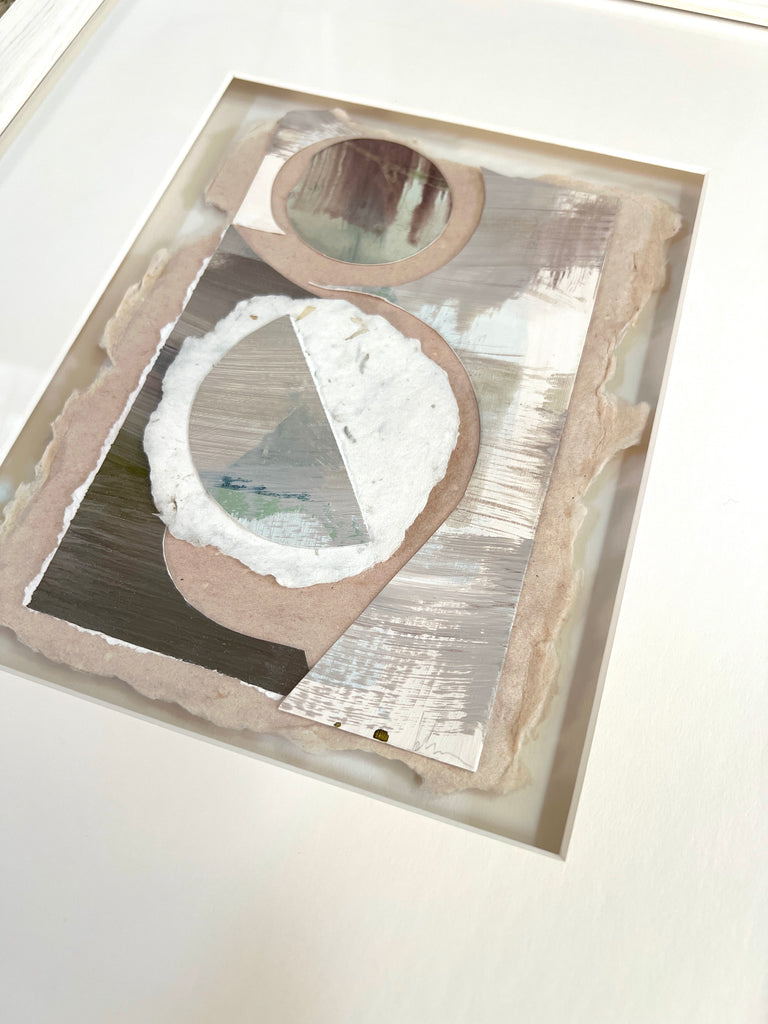 acrylic and handmade paper collage, double matted and custom framed